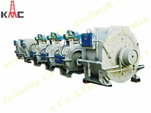 The electromagnetic eddy current brake makes zero wear brake by taking advantage of electromagnetic induction principle and having the features of large torque,without replacement parts,long lifetime,simple operation and maintenance.It includes air blast cooled(DSF) and water cooled(DSW) Series.DSF is featured by compact construction,small weight,convenient maintenance; DSW is featured by high output power,slowly warming, powerful adapitive capacity to environment. It is an ideal auxiliary brake suitable for petroleum drilling rigs of onshore and offshore, and it could provide auxiliary brake torque of 23KN~110KN for 500m~9000m rigs. It is working temperature is -30℃~55℃.